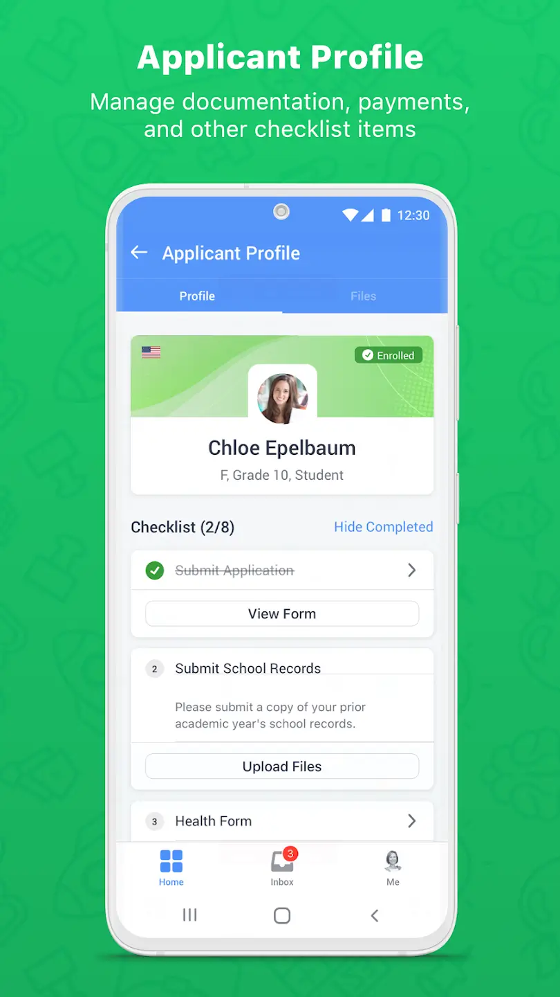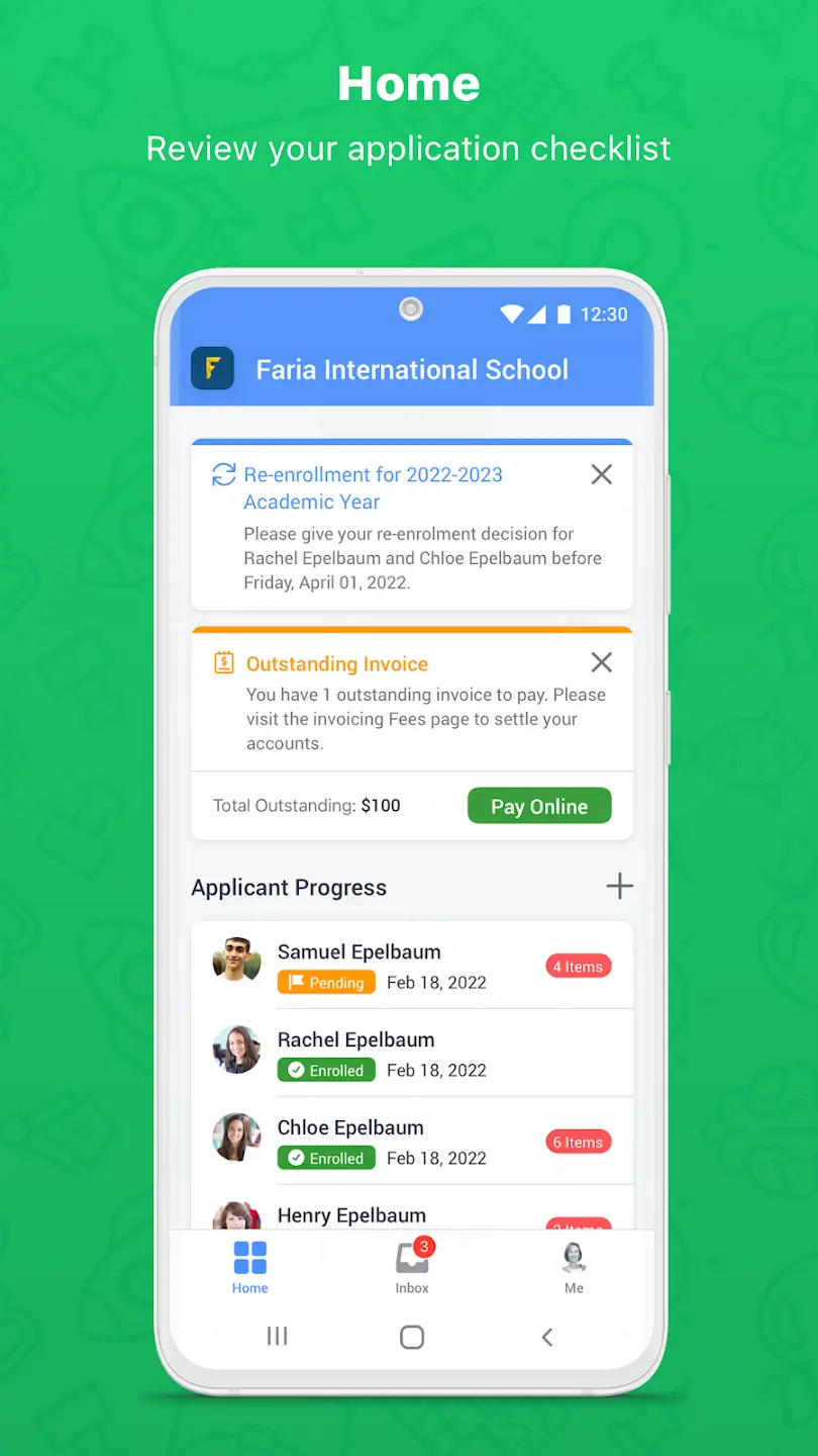 We understand the importance of a seamless parent experience, free from delays and cumbersome processes. Our app empowers parents to conveniently apply on the go, experiencing unparalleled accessibility and a superior user journey. It ensures that the process of applying to a school is fluid and sustains momentum, with notifications and reminders prompting action so that documentation, payments and other checklist items are completed swiftly.