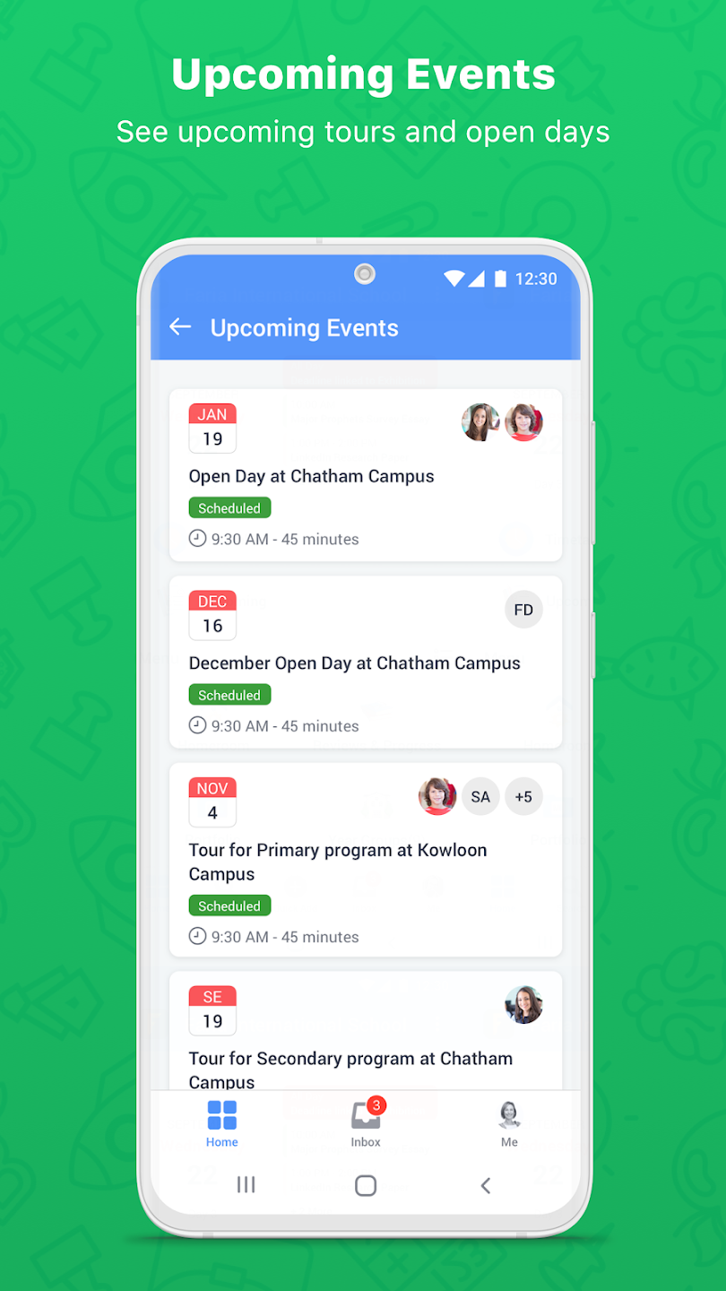 - See upcoming tours and open days, and keep these important dates organised