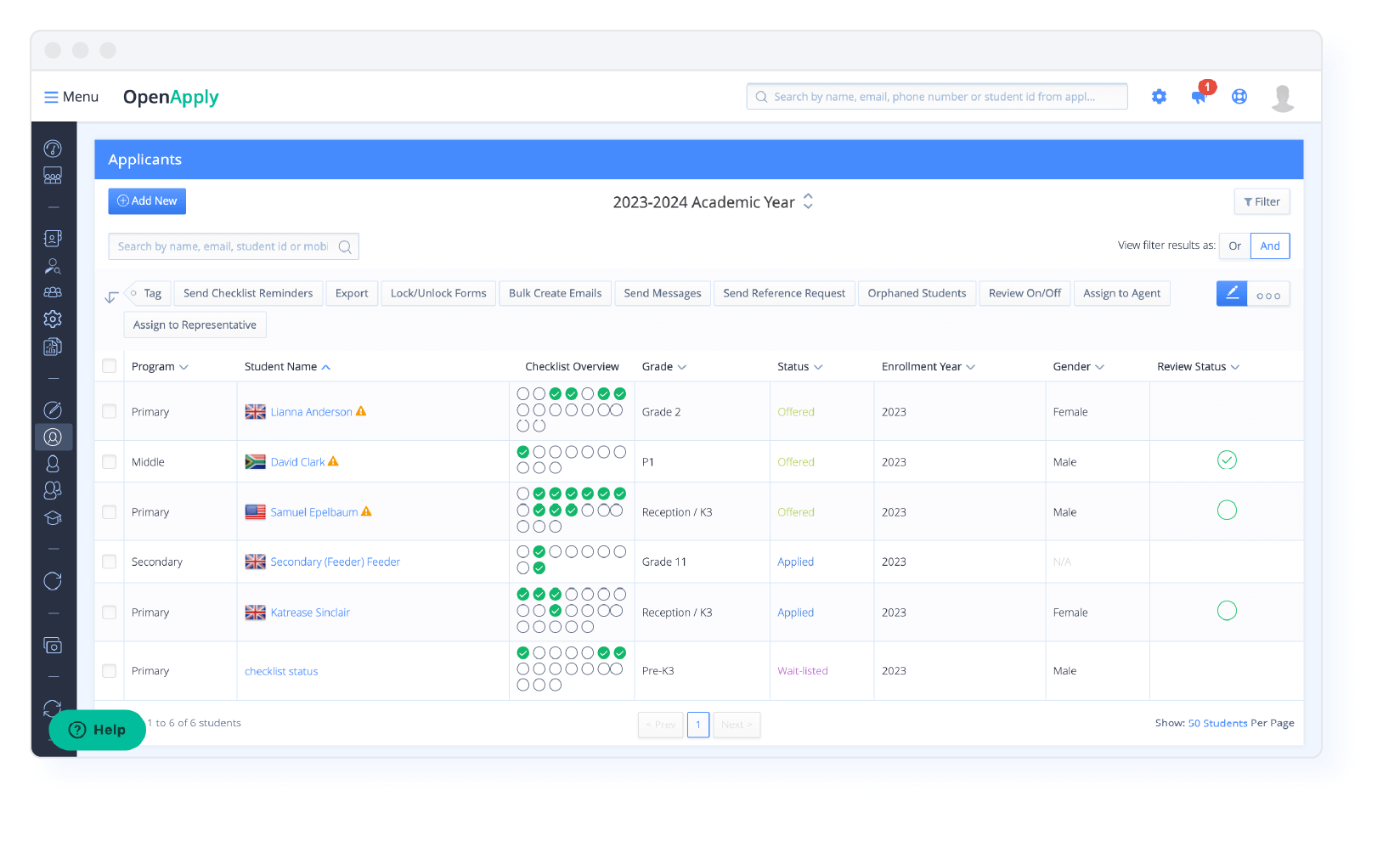 For a snapshot of checklist progress across the applicant pool, schools now benefit from the new checklist overview. This provides schools an at-a-glance yet comprehensive view of each applicant's progress through their checklist. The feature, integrated into the rosters, allows schools to efficiently assess the status of all applicants' checklists. This streamlined approach will save schools time and effort, enabling them to quickly view completed requirements and identify any outstanding tasks. It facilitates a more organised and efficient management of the application process, ensuring admissions teams gain high visibility to the progress of each applicant without the need for detailed manual tracking or analysis.