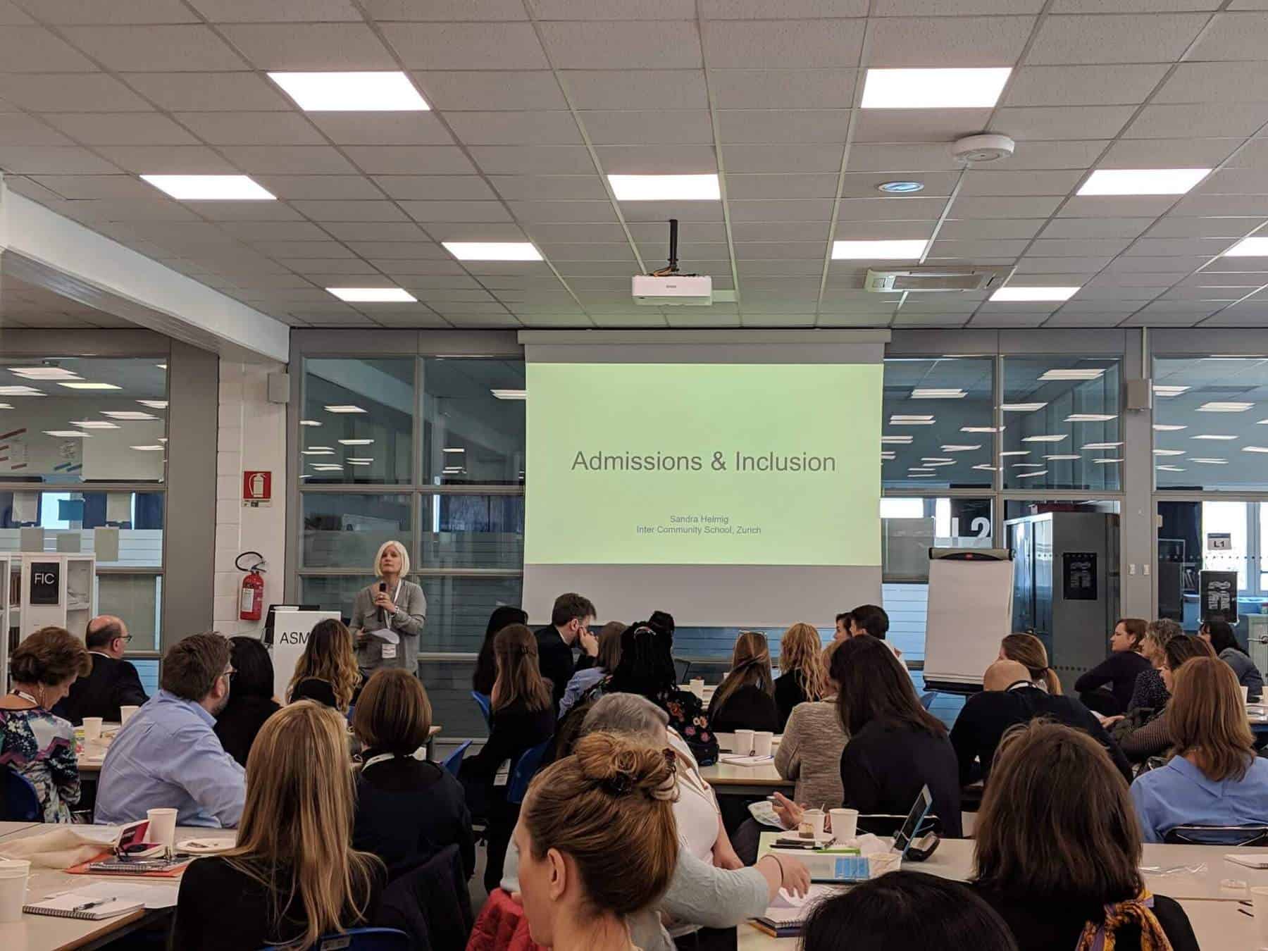 Next Sandra Helmig, a High School Learning Support Teacher from Inter-Community School Zürich with a background in admissions, spoke on Admissions & Inclusion. Sandra provided example cases of inclusive admissions challenges from her previous experience, and walked the attendees through how decisions were made.