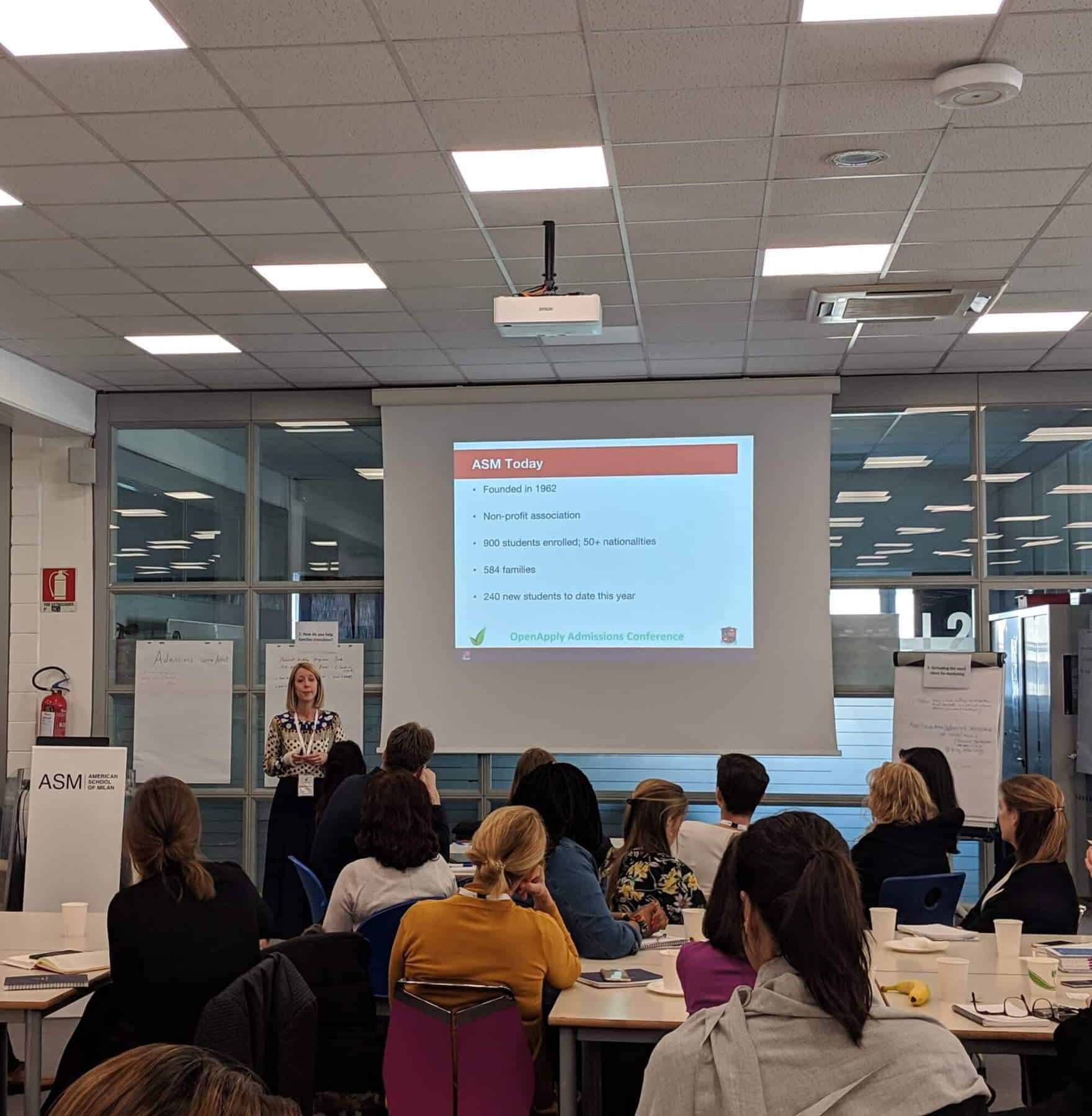 Next, Director of Admissions and Advancement at American School of Milan, Sara Griffith, shared insights into her school’s journey taking their admissions paperless with OpenApply. Sara highlighted that OpenApply was more than just a paperless admissions tool for ASM, as it helps them with a range of tasks from providing data for marketing initiatives to facilitating compliance. Sara and her team helpfully answered many questions from the audience.