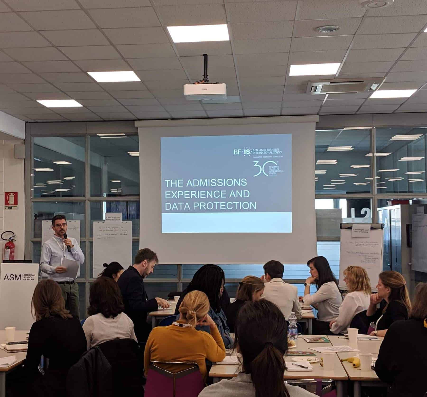 Miguel Martinez Hernando, Admissions Coordinator and Data Protection Officer from Benjamin Franklin International School, then gave an informative talk on admissions and data protection, a hot topic in international schools, especially in Europe. Miguel shared some of the steps that his school has taken to ensure they are GDPR compliant, providing examples of forms and processes used at BFIS. The presentation included a time for Q&A, and the many questions proved that this is still a major challenge for schools, even almost a year after GDPR went into effect.