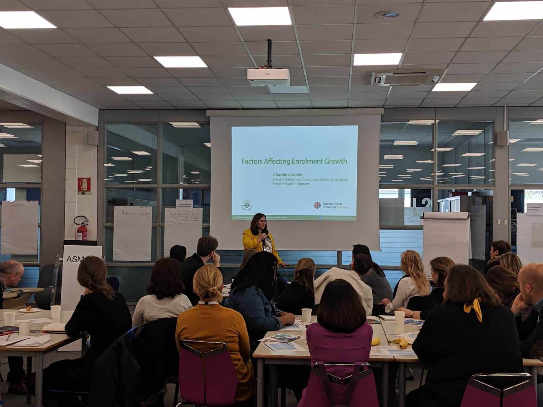The morning was wrapped up by Claudine Hakim, Head of Admissions and Transitions, and Brit Beckers, Admissions Officer, from the International School of London group. Claudine and Brit led an interactive discussion about Factors Affecting Enrolment Growth, including a case study on the International School of London, Surrey, one of their group’s schools that recently announced it would be closing. Participants were encouraged to identify the factors affecting their own school’s enrolment growth and how they could strategise to meet any challenges.